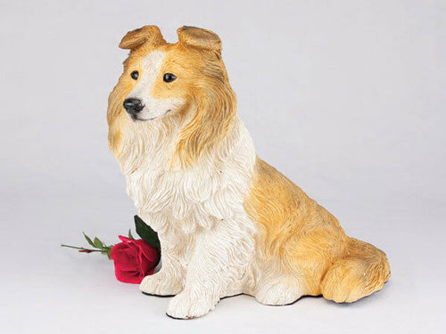 Large 172 Cubic Inches Orange,White& Black Sheltie Resin Urn for Cremation Ashes