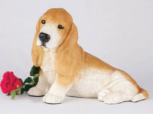 Large 189 Cubic Ins Brown & White Basset Hound Resin Urn for Cremation Ashes