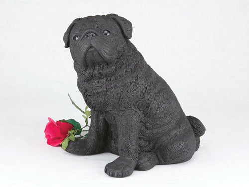 Large 187 Cubic Inches Black Pug Resin Urn for Cremation Ashes
