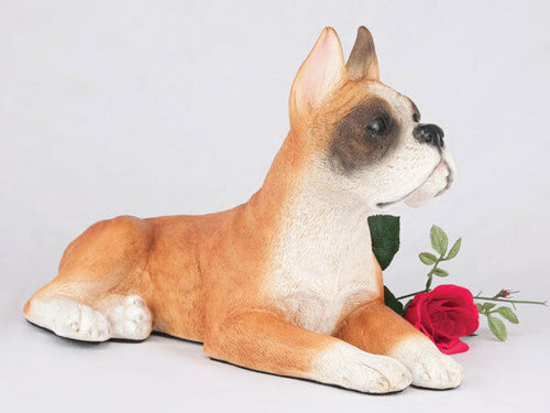 Large 240 Cubic Ins Brown & White Boxer Resin Urn for Cremation Ashes