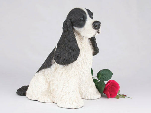 Large 233 Cubic Ins Black & White Cocker Spaniel Resin Urn for Cremation Ashes