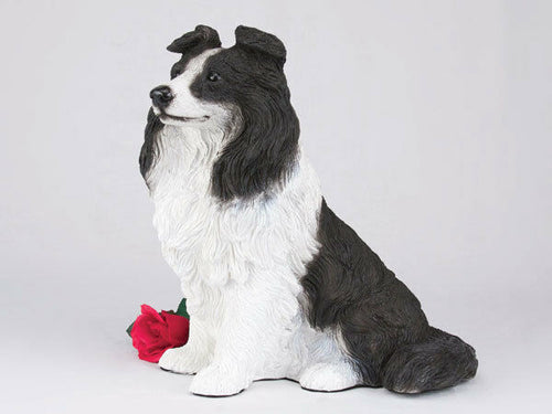 Large 217 Cubic Ins Black & White Border Collie Resin Urn for Cremation Ashes