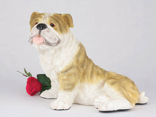 Large 219 Cubic Ins Brown & White Bulldog Resin Urn for Cremation Ashes