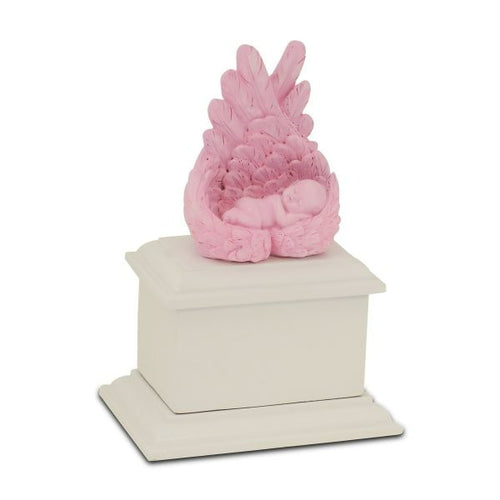 Small/Keepsake 8 Cubic Inch Pink Heavens Care Infant Cremation Urn w/White Base