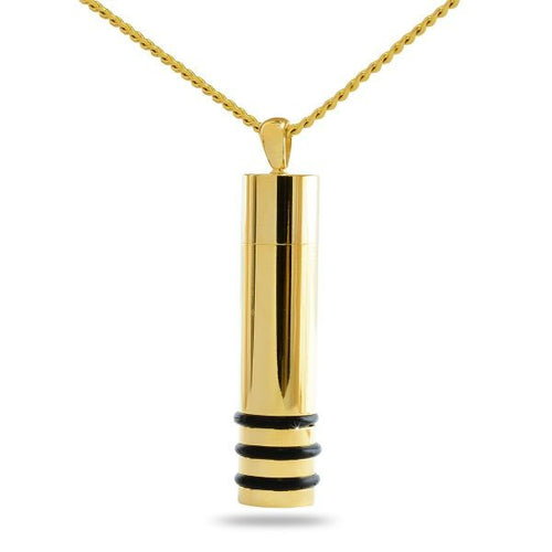 Cylinder Rings Ash Gold Steel Pendant/Necklace Funeral Cremation Urn
