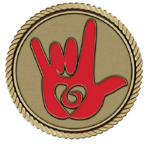 I Love You Hand Medallion for Box Cremation Urn/Flag Case - 2 Inch Diameter