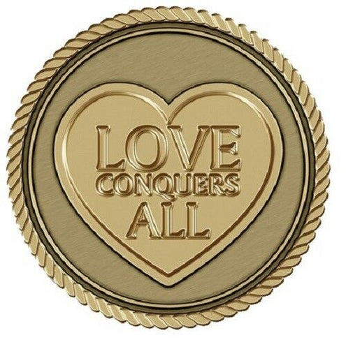 "LOVE CONQUERS ALL" Medallion for Box Cremation Urn/Flag Case - 2 Inch Diameter