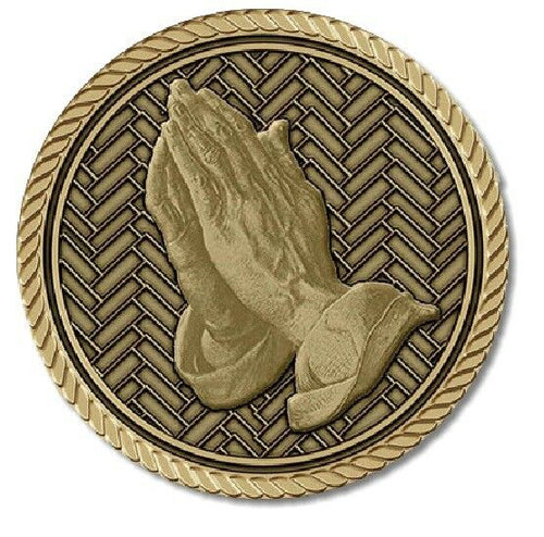Praying Hands (To Left) Medallion for Box Cremation Urn/Flag Case - 3 Inch Diam