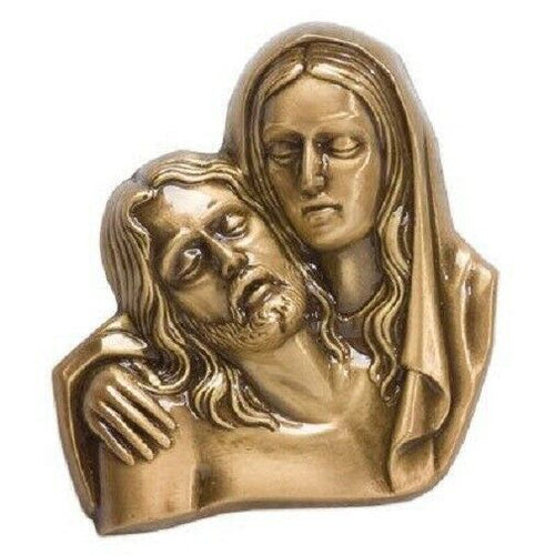 Brass Mother Mary Applique for Funeral Round Cremation Urn, Pewter Also Avail