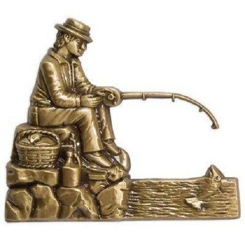 Brass Fisherman Applique for Funeral Round Cremation Urn, Pewter Also Avail.