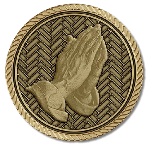 Praying Hands (To Right) Medallion for Box Cremation Urn/Flag Case - 2 Inch Diam